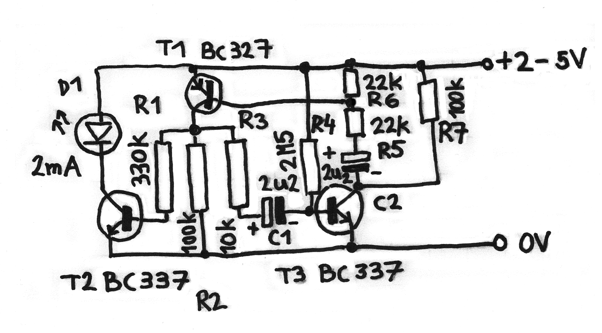 Jde o vylepšený Abraham-Blochův multivibrátor, autorem vylepšení je křemíkový mág Pavel Cimbál, kterému děkuji za svolení ke zveřejnění. V průměru je spotřeba obvodu cca 200µA a při napájení z 1 CR2032 mi blikač vydržel běžet asi 4 měsíce, takže je opravdu nízkospotřebový.