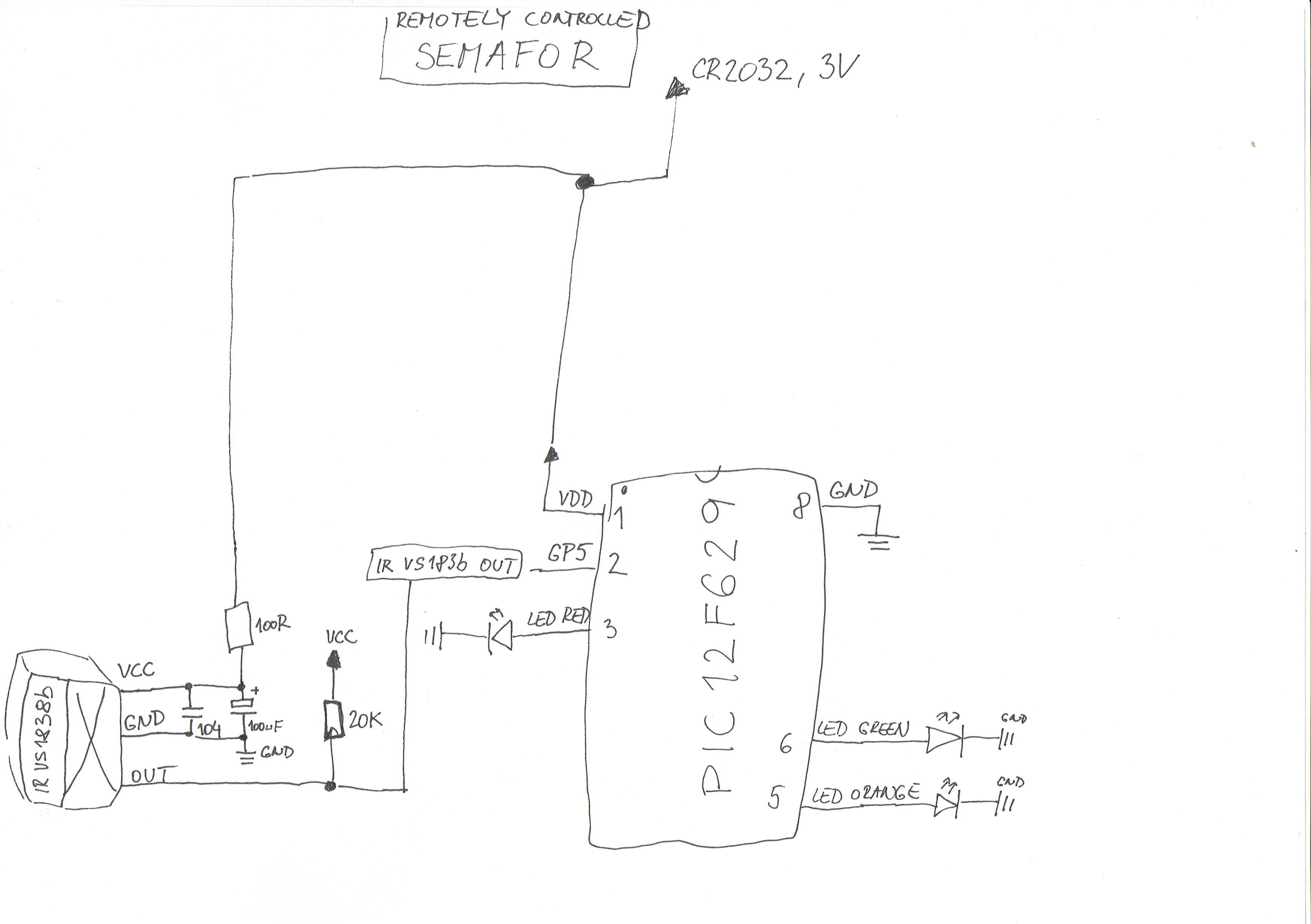 Jedna starší věcička — semafor ovládaný dálkovým ovladačem. Při zapnutí bliká oranžová, po stisknutí tlačítka Power na dálkovém ovladači se klasicky rozsvěcují světla.