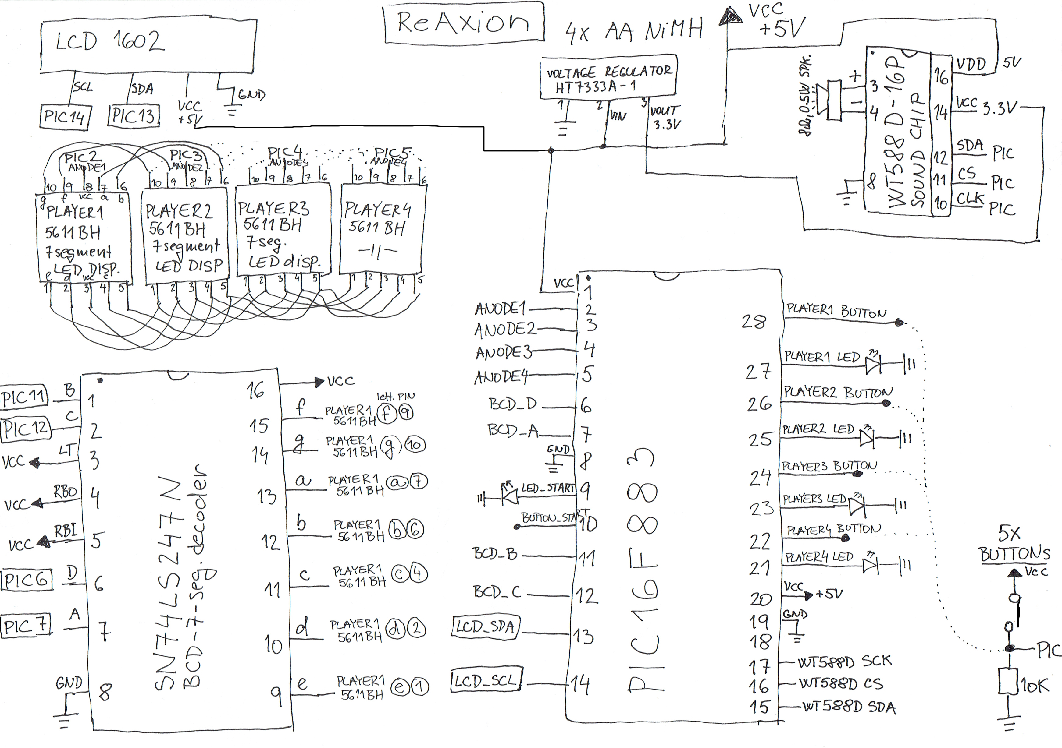 Můj první větší projekt. Jde o jednoduchou hru testující reakce pro 4 hráče. Kdo nejrychleji zareaguje stiskem svého tlačítka po zaznění zvonku, získává bod, 10 kol na hru. Kdo podvádí předčasným stiskem, je pro dané kolo vyloučen. Ideální hra pro rodiny s dětmi na dlouhé zimní večery :-)
